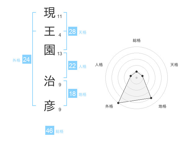 現王園 治彦さんを姓名の画数から五運を鑑定