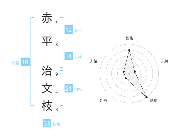 赤平 治文枝さんの総格は33画の4点!