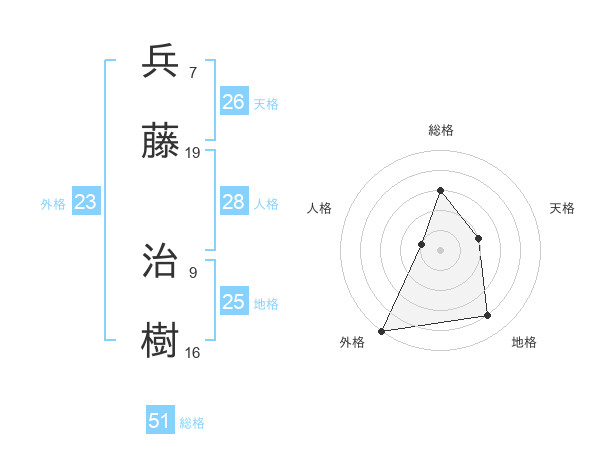 兵藤 治樹さんの総格は51画の3点!