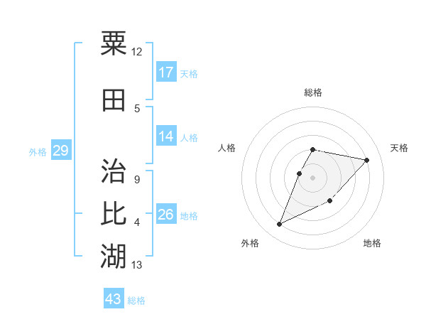 粟田 治比湖さんの天格は17画の4点!