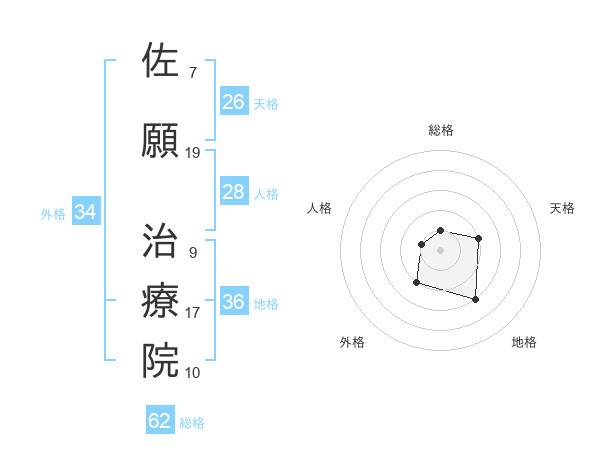 佐願 治療院さんを姓名の画数から五運を鑑定