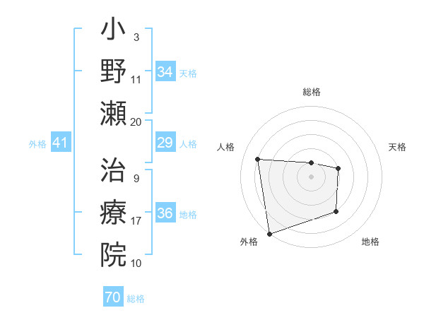 小野瀬 治療院さんの外格は41画の5点