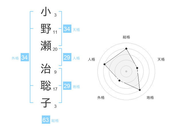 小野瀬 治聡子さんの総格は63画の4点