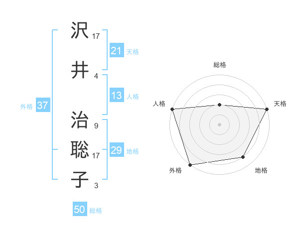 沢井 治聡子さんを姓名の画数から五運を鑑定
