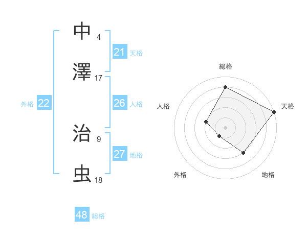 中澤 治虫さんの総格は48画の4点!