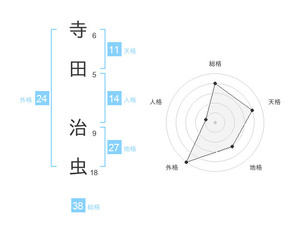 寺田 治虫さんの総格は38画の4点!