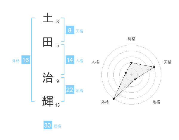 土田 治輝さんの総格は30画の2点!