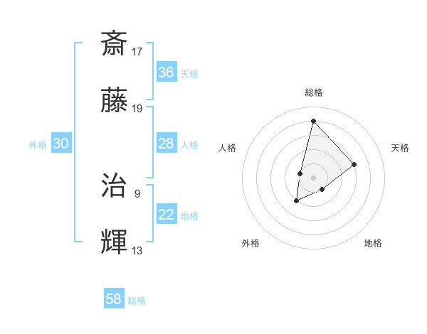斎藤 治輝さんを姓名の画数から五運を鑑定
