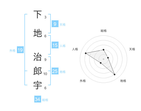 下地 治郎宇さんを姓名の画数から五運を鑑定