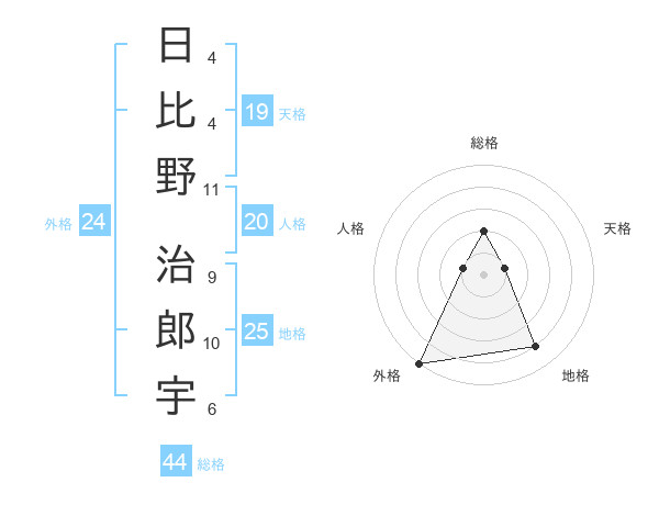 日比野 治郎宇さんを姓名の画数から五運を鑑定