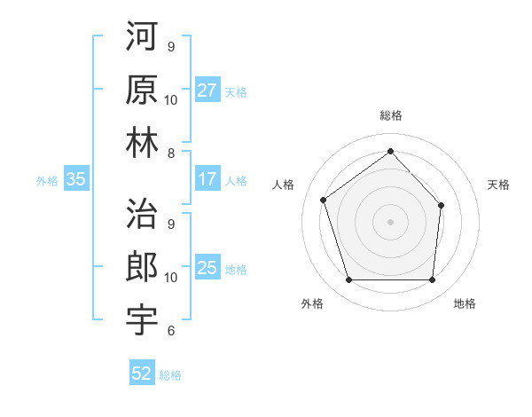 河原林 治郎宇さんの総格は52画の4点!
