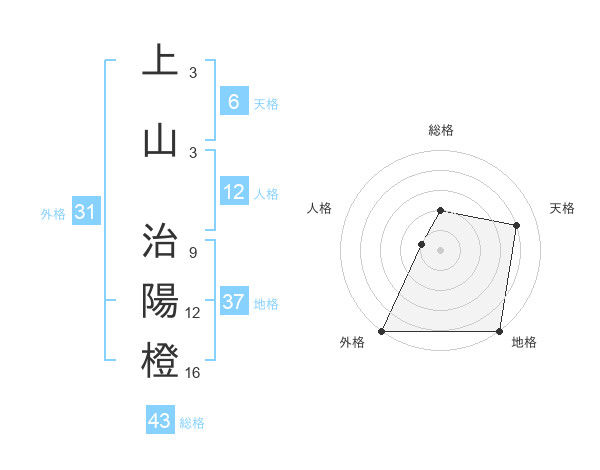 上山 治陽橙さんを姓名の画数から五運を鑑定