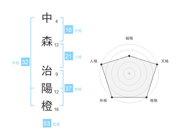 中森 治陽橙さんの総格は53画の3点!