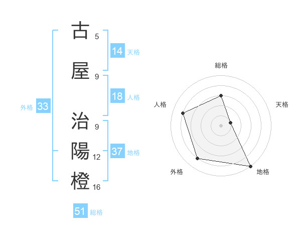 古屋 治陽橙さんの総格は51画の3点