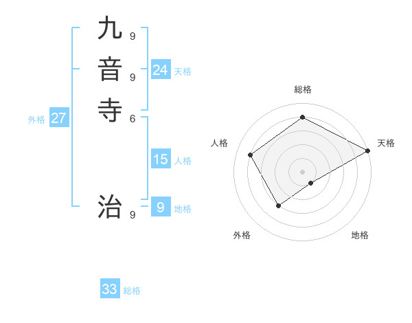 九音寺 治さんの総格は33画の4点!