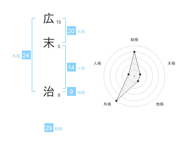広末 治さんの総格は29画の4点!