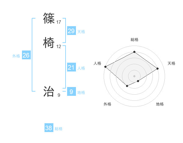 篠椅 治さんの総格は38画の4点!