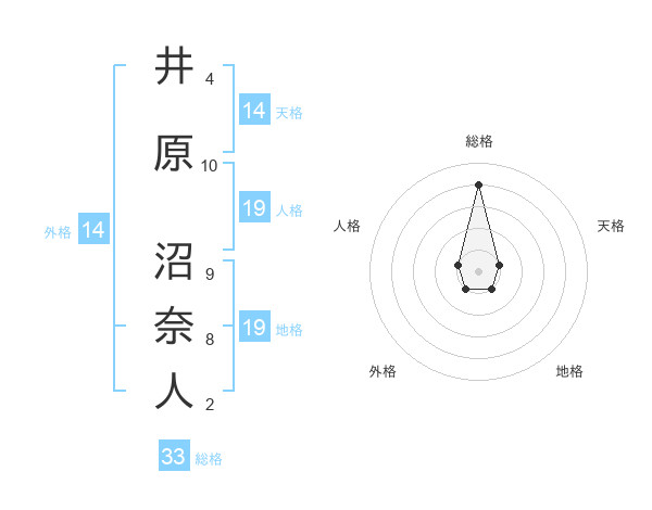 井原 沼奈人さんを姓名の画数から五運を鑑定