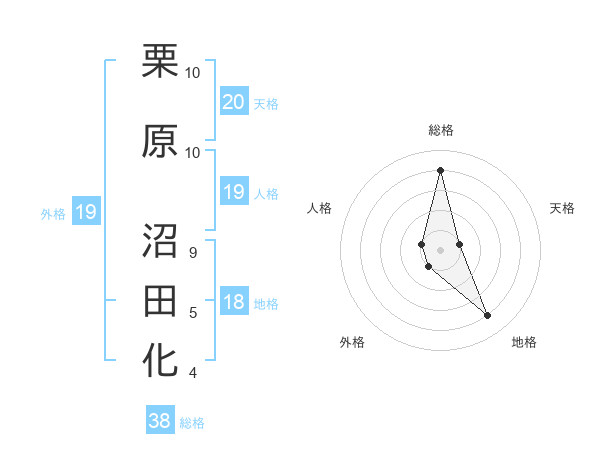 栗原 沼田化さんを姓名の画数から五運を鑑定