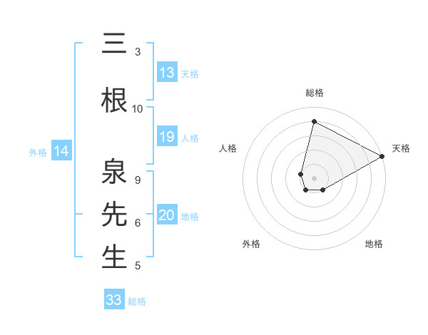 三根 泉先生さんの天格は13画の5点