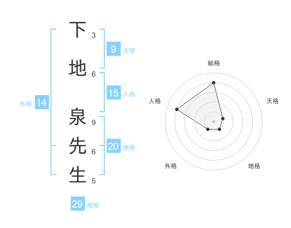 下地 泉先生さんを姓名の画数から五運を鑑定