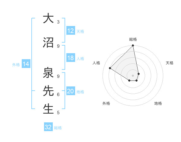 大沼 泉先生さんを姓名の画数から五運を鑑定