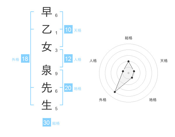 早乙女 泉先生さんを姓名の画数から五運を鑑定