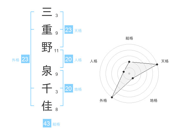 三重野 泉千佳さんの外格は23画の5点!