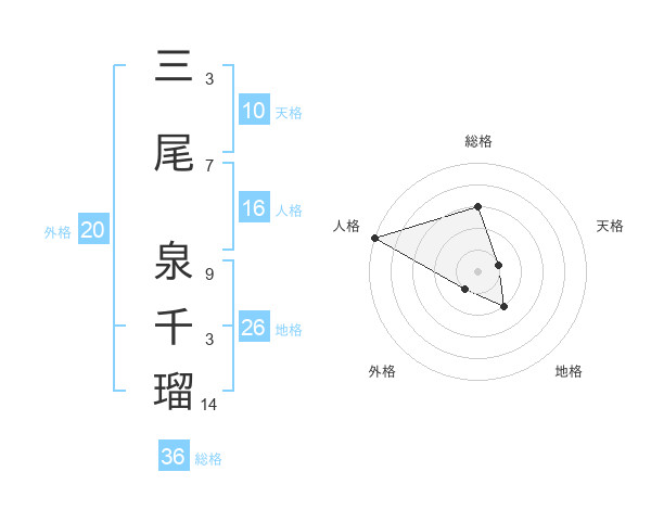 三尾 泉千瑠さんの地格は26画の2点!