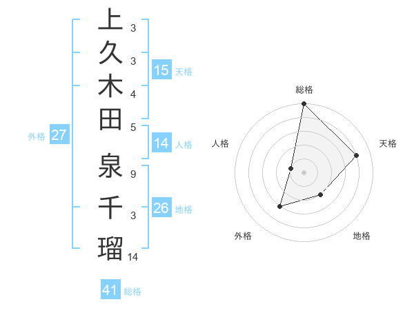 上久木田 泉千瑠さんを姓名の画数から五運を鑑定