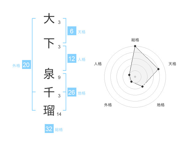 大下 泉千瑠さんを姓名の画数から五運を鑑定
