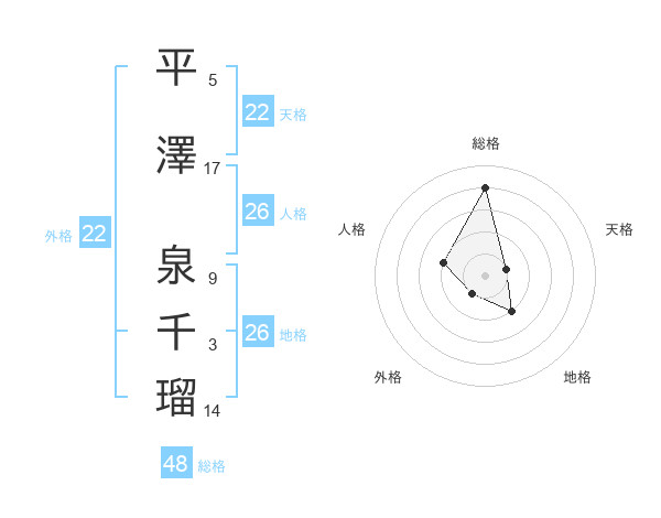 平澤 泉千瑠さんの外格は22画の1点!