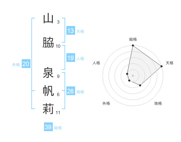 山脇 泉帆莉さんの総格は39画の5点!
