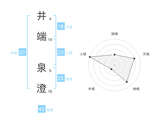 井端 泉澄さんを姓名の画数から五運を鑑定
