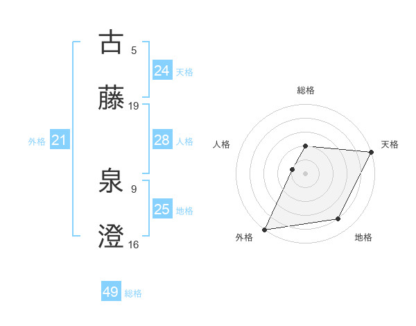 古藤 泉澄さんを姓名の画数から五運を鑑定