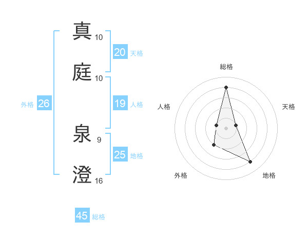 真庭 泉澄さんを姓名の画数から五運を鑑定