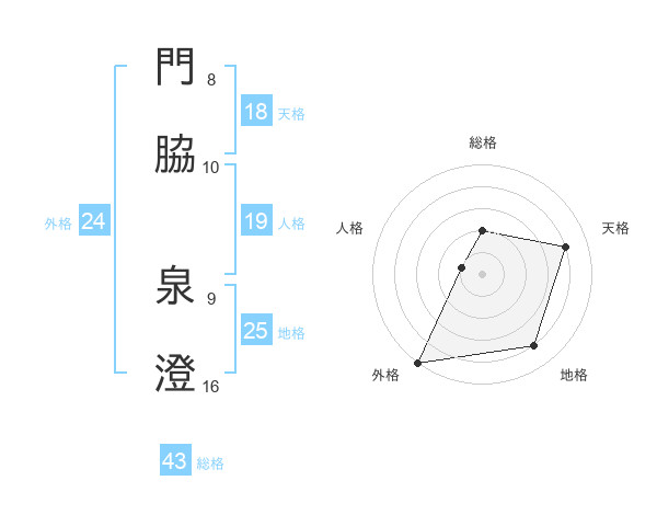 門脇 泉澄さんの外格は24画の5点!