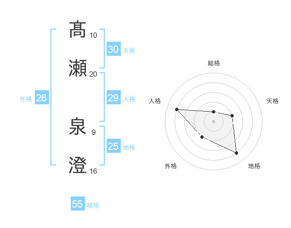 髙瀬 泉澄さんの天格は30画の2点!