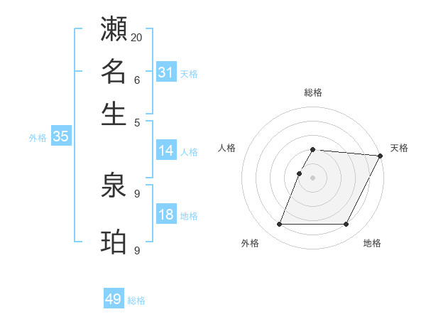 瀬名生 泉珀さんを姓名の画数から五運を鑑定