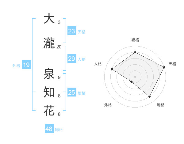 大瀧 泉知花さんを姓名の画数から五運を鑑定