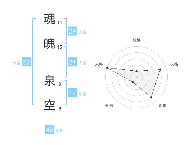 魂魄 泉空さんの天格は29画の4点!