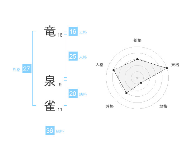 竜 泉雀さんを姓名の画数から五運を鑑定