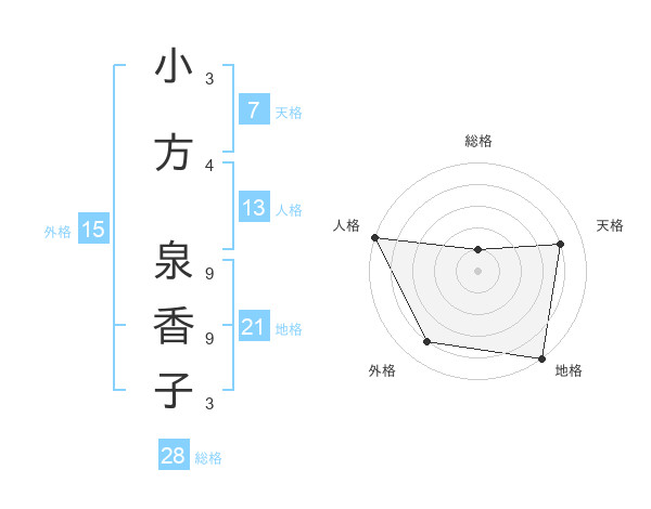 小方 泉香子さんを姓名の画数から五運を鑑定