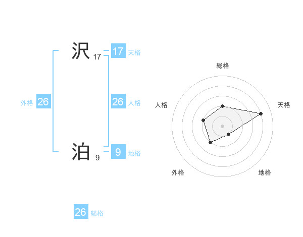 沢 泊さんの総格は26画の2点!