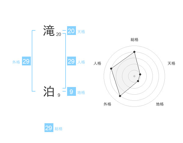 滝 泊さんの総格は29画の4点!