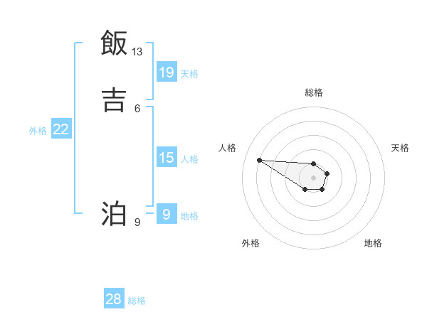 飯吉 泊さんを姓名の画数から五運を鑑定