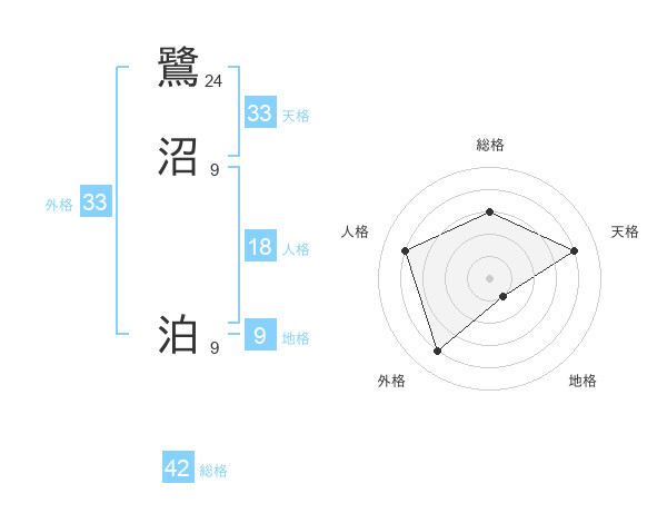 鷺沼 泊さんの総格は42画の3点!