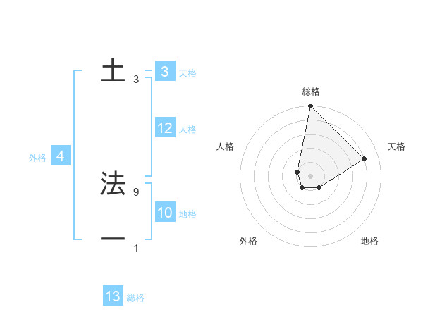 土 法一さんの総格は13画の5点!