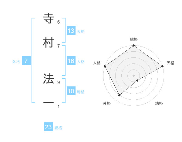 寺村 法一さんの天格は13画の5点!
