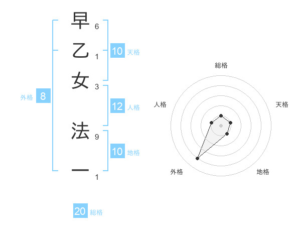 早乙女 法一さんの総格は20画の1点!